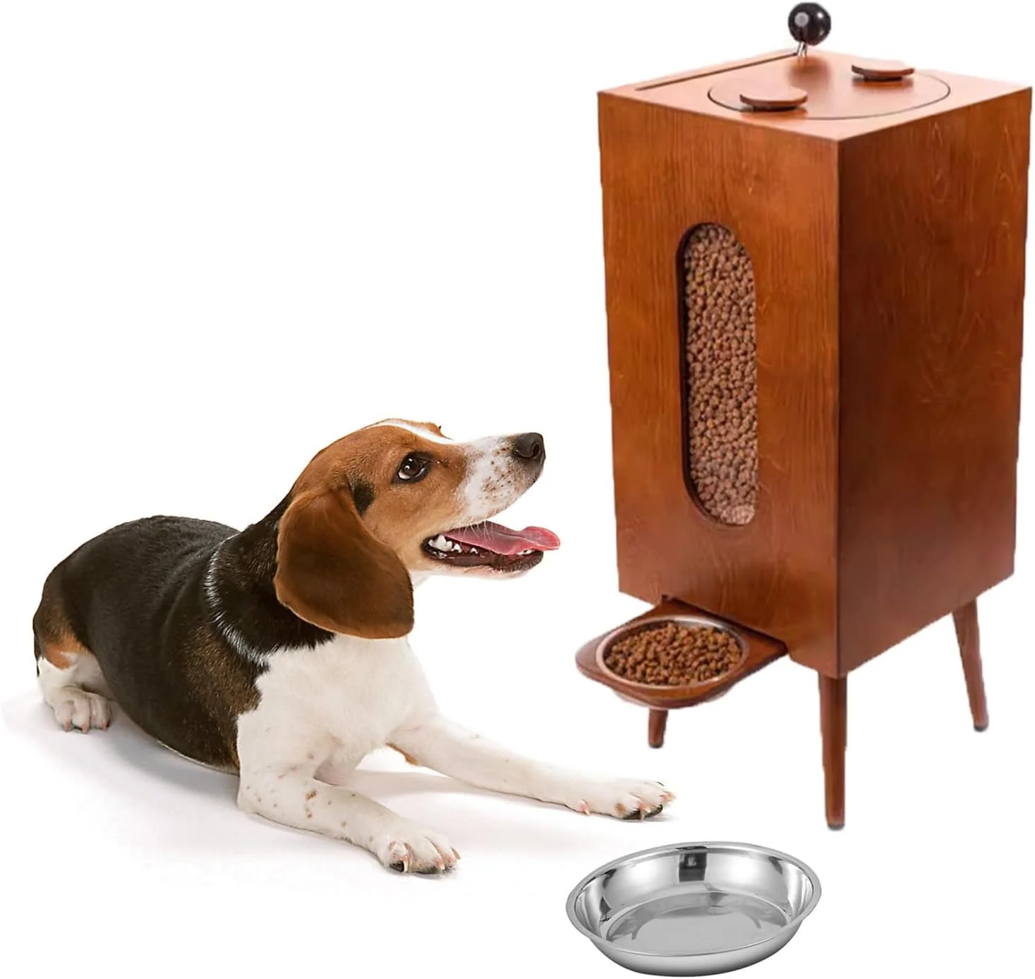 🐕Pet feeder, 2 height-adjustable pet food storage cabinets with 3 bowls Feeder for dogs and cats