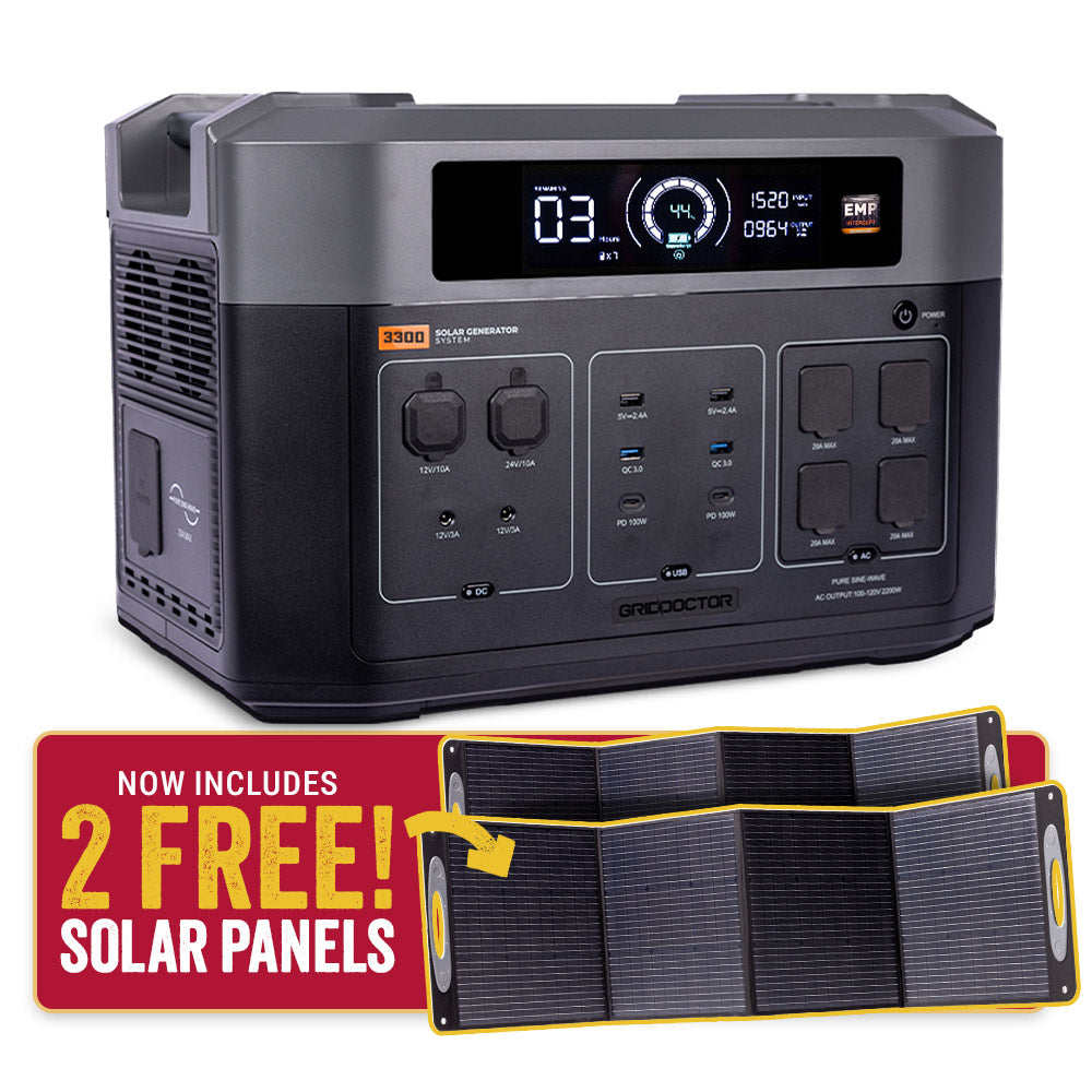 3300 Solar Generator System w/ EMP Intercept Technology + 2 FREE Waterproof 200W Solar Panels