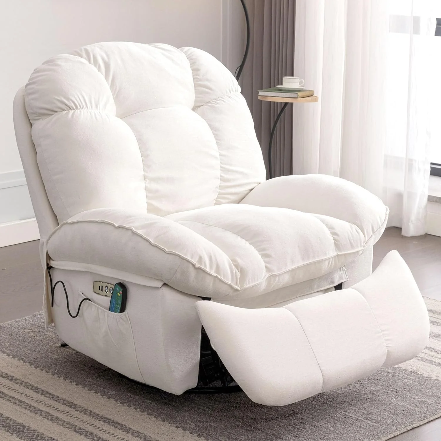 Power Recliner Chair, Massage Rocker Recliner Chairs for Adults with Heated, Oversized Rocker Swivel Chairs for Living Room, Comfy Nursery Rocking Chairs with USB-C Ports and Side Pocket, White
