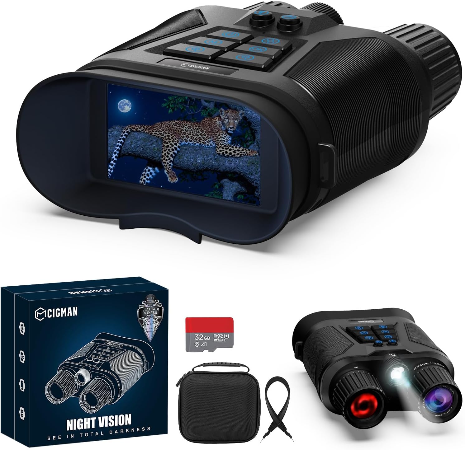 4K Night Vision Goggles, 3.99" Large Screen, 5000mAh Battery, f/1.0 Large Aperture, 32GB Memory Card for Photos and Videos, Flashlight, 5X Zoom, Compass